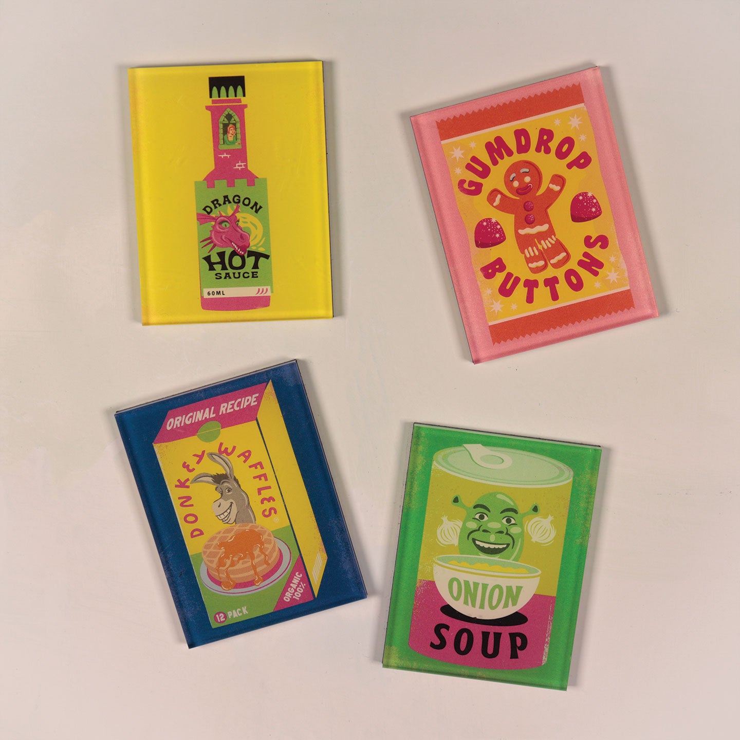 The taste of Far Far Away is now closer than ever! This fairytale magnet set features four iconic food inspired delights from the Shrek universe: Shrek’s savoury Onion Soup, Dragon’s fiery Hot Sauce, Gingy’s Gumdrop Buttons, and Donkey’s delicious Donkey Waffles. It’s the perfect addition for fans looking to bring a little piece of the swamp into their lives.